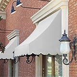 Awntech Beauty-mark Nantucket 64 1/2" X 44" Crescent-shaped Awning with 36" ProjectionFor use over a window or entryway Heavy-duty commercial-grade patented design is ideal for both residential and commercial applications Structural aluminum frame stands up to the elements Canopy is made from 100% solution dyed acrylic that is water-, fade- and mildew-resistant for outdoor use Measures 64 1/2"W x 44"H (with valance) with a 36" projection Shade provides energy cost savings Tested to withstand wind and snow loads Available solid colors: black, bright blue, brown, burgundy, forest, gun, dusty blue, olive, linen, terra cotta, white Available stripe colors: black/white, bright blue/white, brown/tan, brown multicolored, black/tan, burgundy/forest/tan, burgundy/tan, forest/white, grey/white, tan/terra/white, olive/tan, terra/tan, linen/white Easy to assemble and install Installation requires an electric drill, an adjustable wrench, Phillips and hex screwdrivers, a tape measure, a ladder and a level (not included) Made in the USA Includes awning, wall brackets and product manual Warranty: 5 years limited