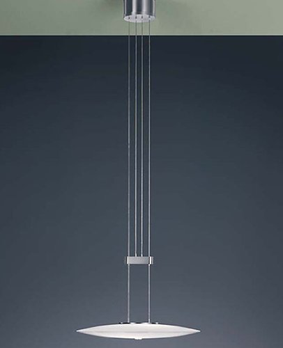 Leon pendant light - large, black and white, 220 - 240V (for use in Australia, Europe, Hong Kong etc.)?Product Details: - The Leon pendant light is an exclusive lighting fixture manufactured by Helestra in Germany. This suspension mounted luminaire is great for halogen lighting. The Leon is composed of matte nickel and glass. The glass diffuser for this fixture is available in all white or black and white. Height adjustable. - Details: - Manufacturer: - Helestra - Designer: - Helestra - Made in: - Germany - Dimensions: - Small: Height: 35.4-63 - (90-160 cm) Width: 11 - (28 cm) - Large: Height: 35.4-63 - (90-160 cm) Width: 15.7 - (40 cm) - Light bulb: - Small and Large: 3 X 35W halogen - Material: - Nickel, Glass