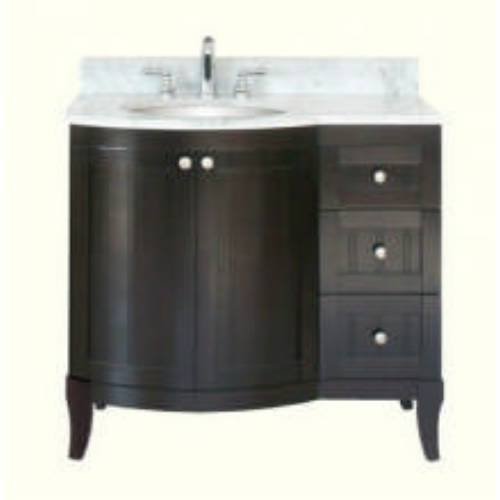 #Malibu is one of Empire's popular collections. Its transitional flair appeals to many different tastes.Carrera White 3 4" marble top (37" x 22.3") included White oval bowl (17" x 14") included - installed Two door bathroom vanity Pre-drilled 8" centers on vanity top Loose 4" backsplash included All 3 sides, cut-out and top of backsplash have OG edge Underside of countertop has 4 female screws embeded. Four male screws and hanging clips are provided for easy installation.Basin Shape: Oval Bowl Dimensions: 17" x 14" Collection: Malibu 100 Depth: 21-5 8" Faucet Included: No Finish Shown: Dark Mahogany Height: 33.00 Installation Type: Free Standing Length: 21.625 Marble Top Dimensions: 37" x 22.3" Material: Wood Mirror Included: No Number of Basins: 1 Number of Doors: 2 Number of Drawers: 3 Number of Sinks: Single Sink Style: Contemporary Modern Type: Free Standing Vanity Width: 36