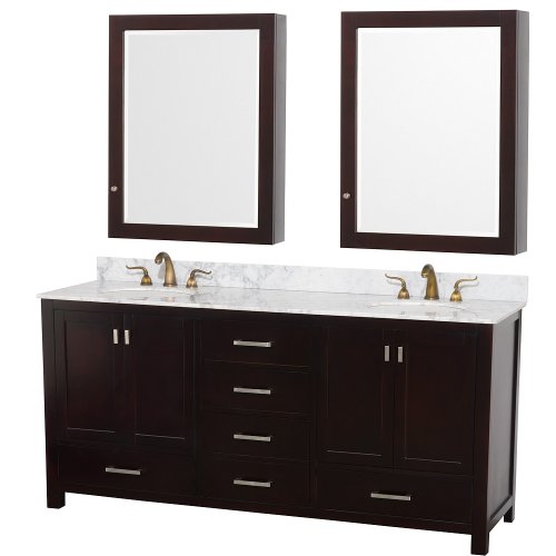 FeaturesConstructed of environmentally friendly, zero emissions solid Oak hardwood, engineered to prevent warping and last a lifetime12-stage wood preparation, sanding, painting and finishing processHighly water-resistant low V.O.C. sealed finishUnique and striking contemporary designMinimal assembly required Wyndham Collection Abingdon 72-in. Double Bathroom Vanity Set Color - Espresso?