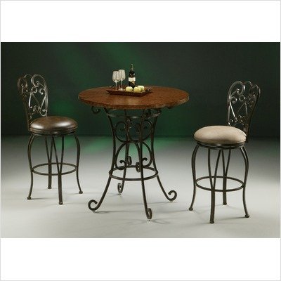 #[***INCLUDED IN THIS SET: (1)36" Copperstone Table Top, (1)Magnolia 40" Pub Table with Copperstone Table Top, (6)Magnolia Swivel Barstool in Autumn Rust] Height: 26", Fabric: Florentine Coffee Features: -Coppperstone top.-Available in 26'' or 30'' seat height.-High quality foam cushion.-Contemporary style.-Round shape top. Includes: -Set includes pub table and two barstools. Options: -Upholstered in florentine coffee fabric. Construction: -Base construction: Steel.-Web seating steel construction. Color/Finish: -Barstool and base finish: Rust resistant autumn. Assembly Instructions: -Assembly required. Dimensions: -26'' Barstool dimensions: 42.75'' H x 17.75'' W x 20'' D.-30'' Barstool dimensions: 46.75'' H x 17.75'' W x 20'' D. Collection: -Magnolia collection. Warranty: -Manufacturer provides one year warranty.