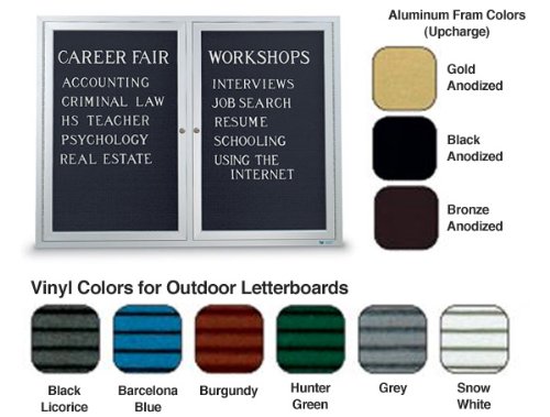 Indoor/Outdoor Lockable Enclosed Letterboards, Background Color=Snow White, Face Size & Enclosure Options=42"W x 32"H - Two Lockable Hinged Doors, Colors=Aluminum