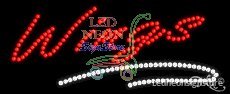 Wings LED Sign 11 inch tall x 27 inch wide x 3.5 inch deep outdoor only with outdoor box for use under regular weather made in USA
