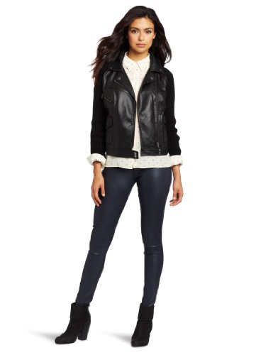 Buy Democracy Women's Biker Sweater Jacket, Black, LargeDeals.